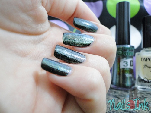 Agora vamos aos Ópticos. Nestes usei no indicador e anelar, uma camada de preto e uma dos ópticos. No dedo médio e mindinho, usei 2 camadas de cada óptico, pois eles fecham bem sozinhos, porém, o efeito é o mesmo.